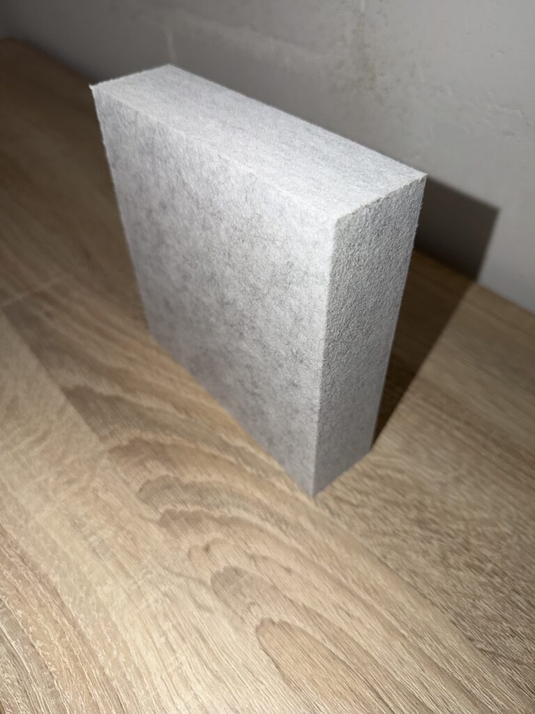 Das Eskira SilentPad 50 ist ein unbehandeltes Akustikpad aus hochleistungsfähigem PET-Vlies mit einer Gesamtstärke von 50 mm. Das Material entspricht der Brandschutzklasse B1 und bietet durch seine offenporige Struktur eine starke Schallabsorption, besonders im mittleren und hohen Frequenzbereich. Dadurch eignet sich das SilentPad ideal für Deckenanwendungen, Wandflächen, akustische Baffle-Konstruktionen sowie zahlreiche individuelle Projektlösungen.
